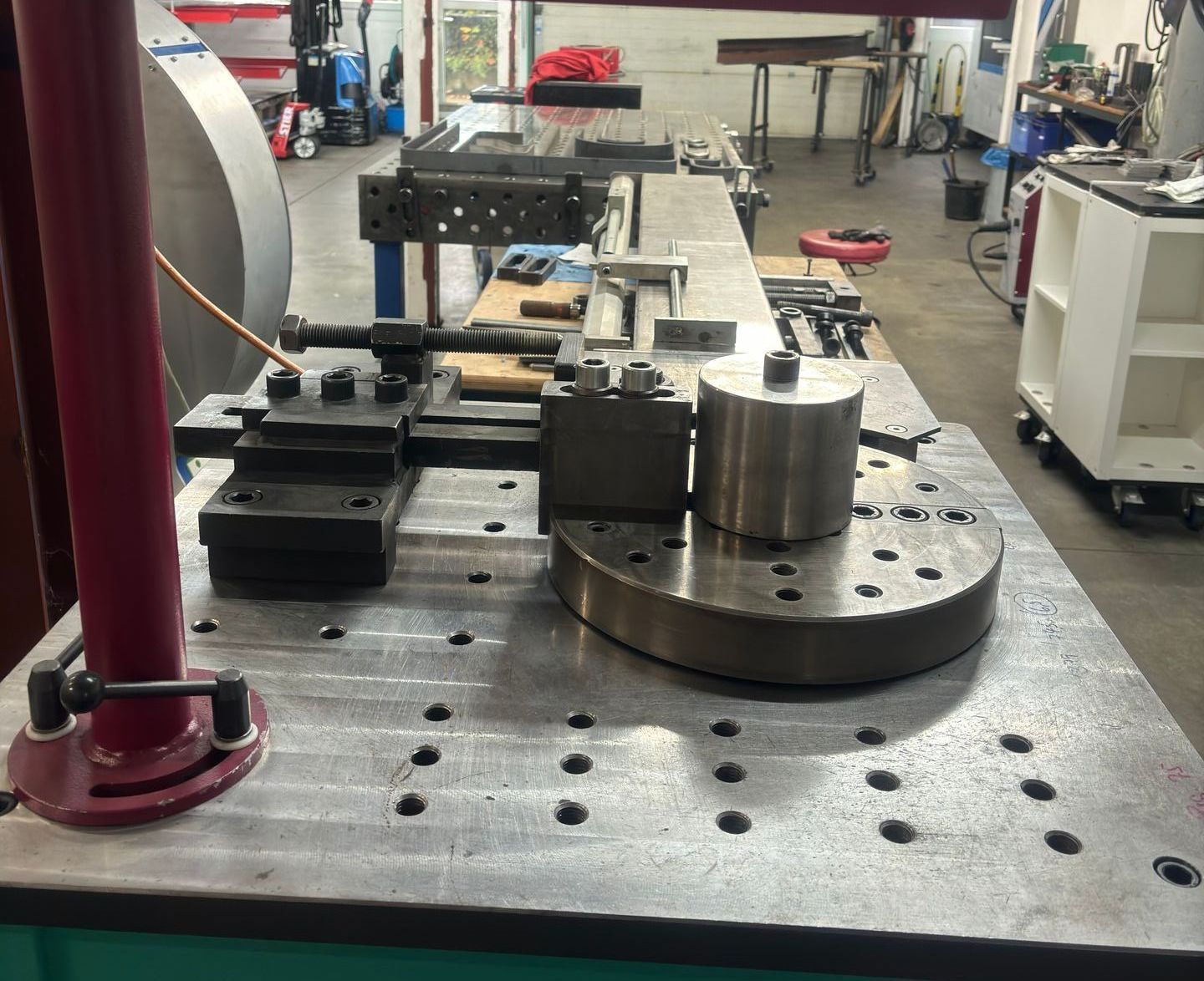 Hier biegen wir Rundstahl, Flacheisen und verschiedene weitere Materialien von 0 - 180°.