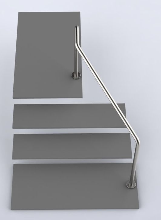 - Handlauf mit versetzt steigendem Treppenverlauf und Podest.