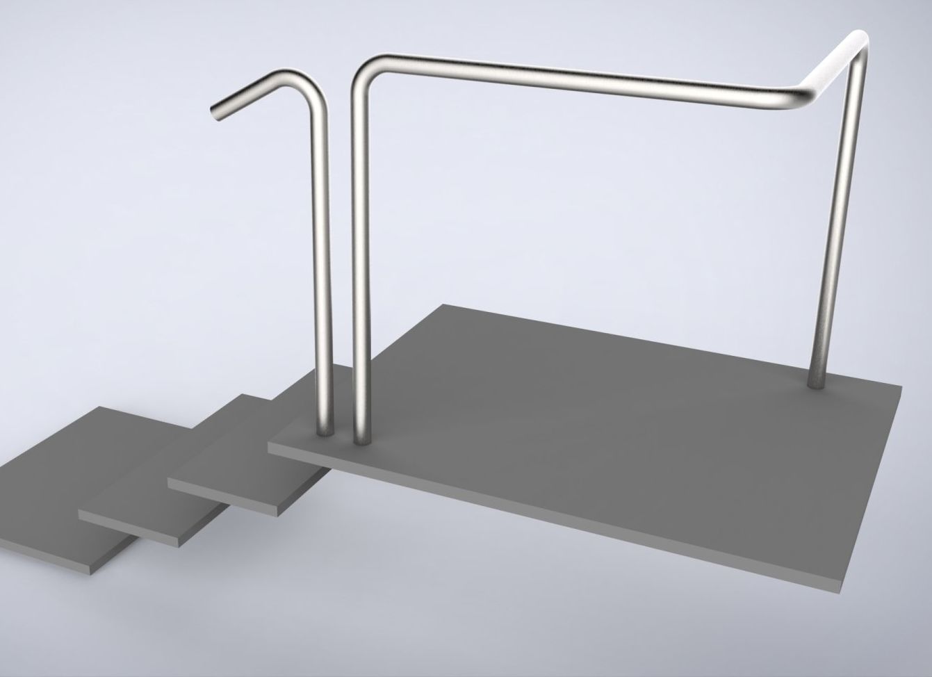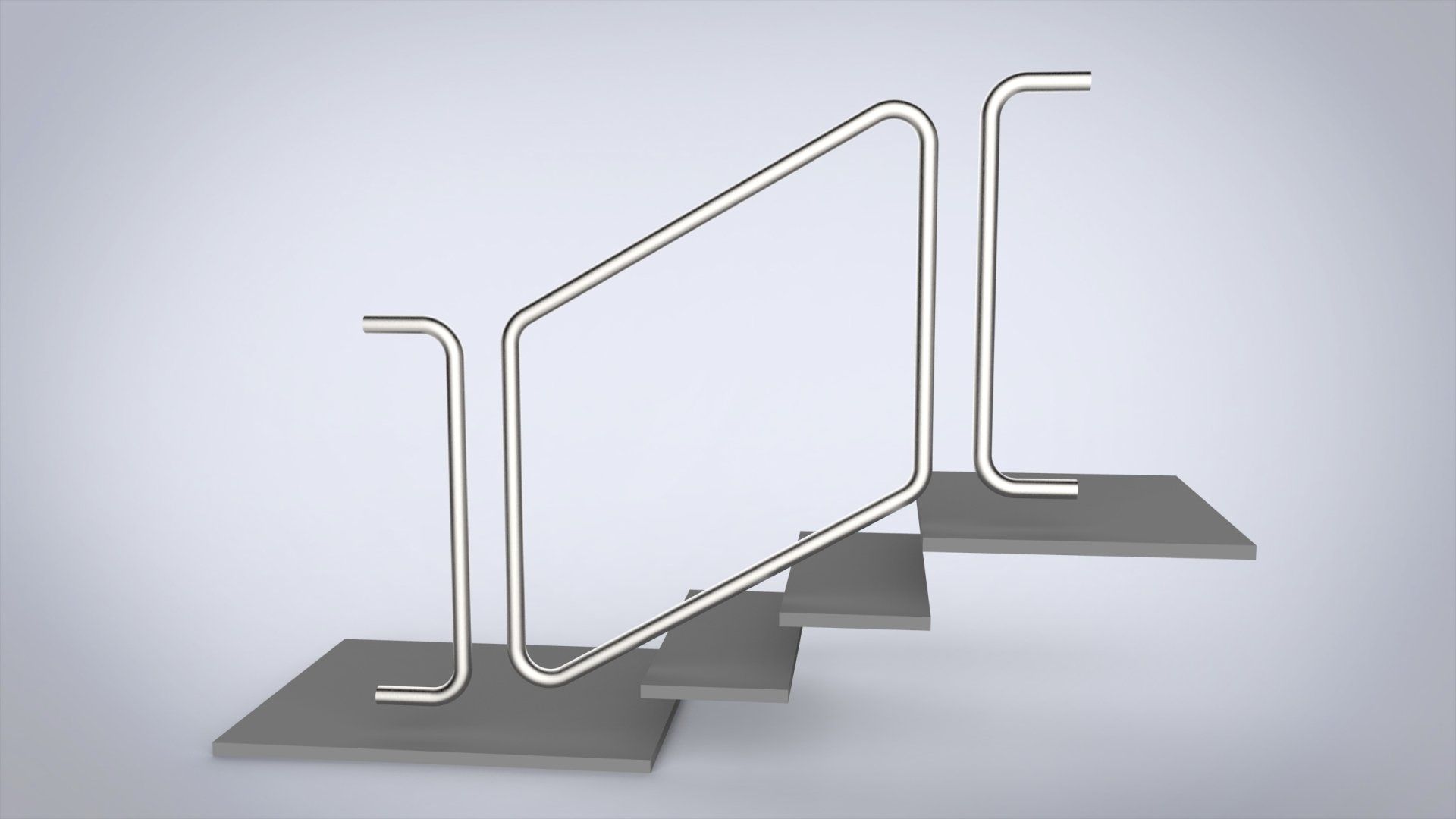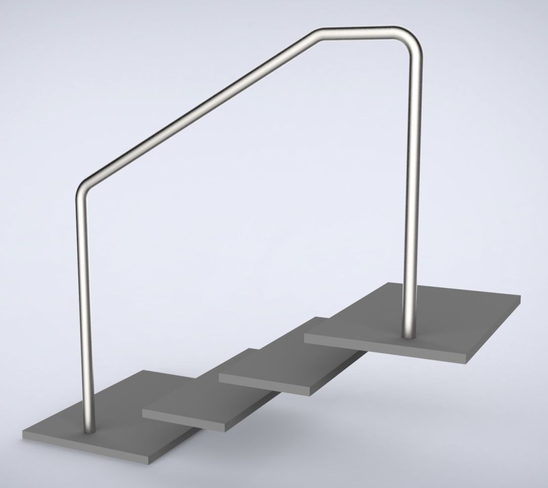 - Handlauf mit versetzt steigendem Treppenverlauf und Podest.